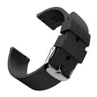 Our black silicone quick release straps are smooth and soft on both sides. Polished stainless steel hardware make these straps comfortable, waterproof, and washable. They are durable and fit a wide range of popular traditional watches and smartwatches.